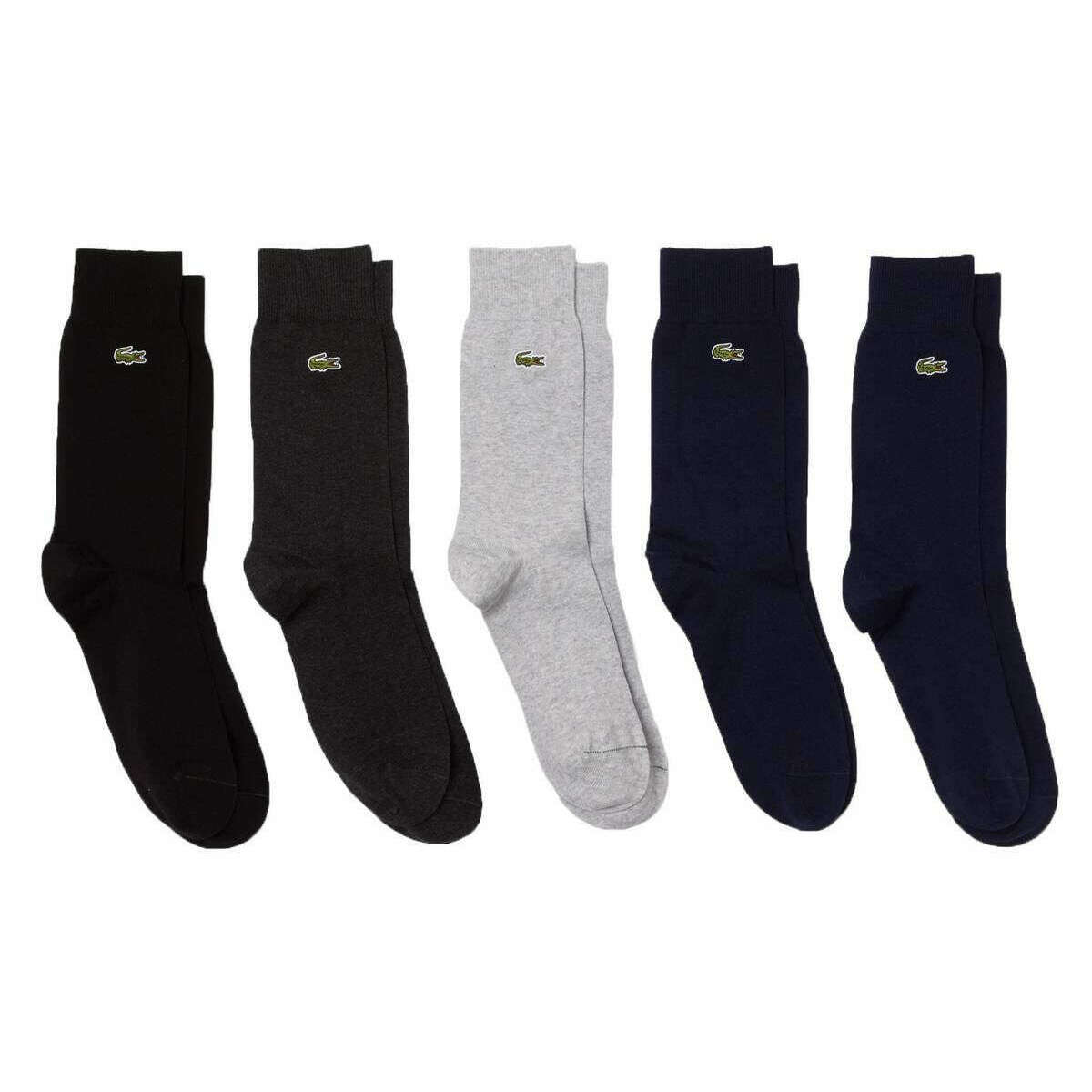 Lacoste Long Cotton 5 Pack Socks - Marine / Silver / Black