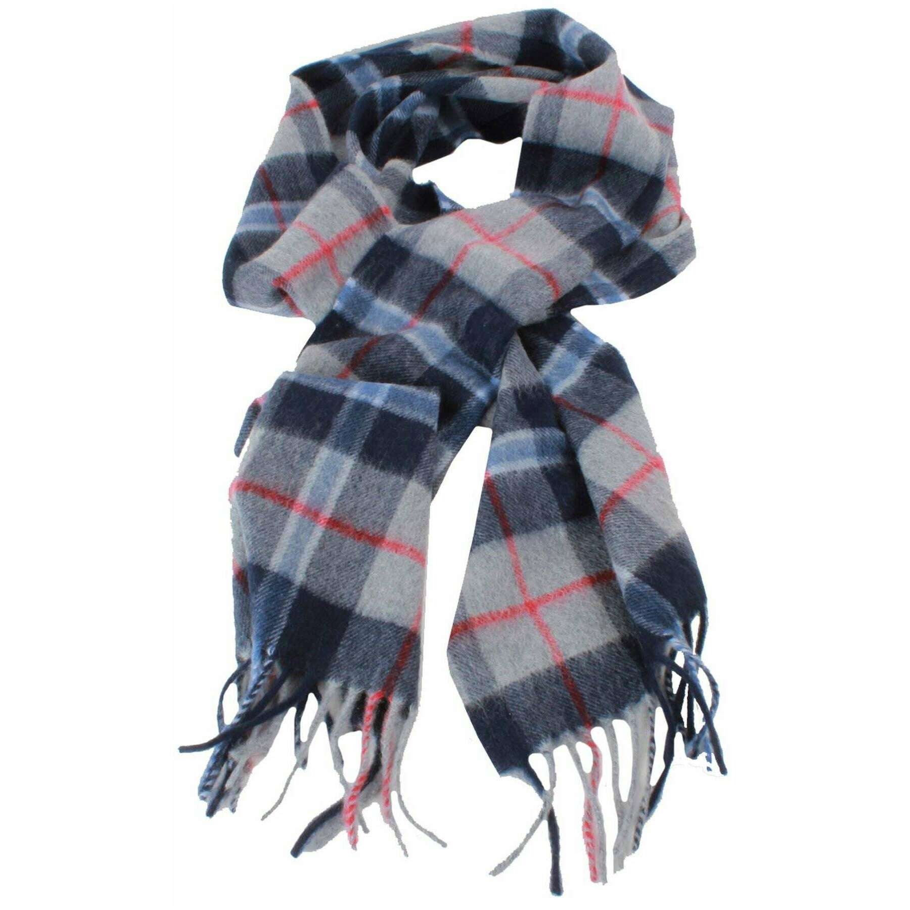 Locharron of Scotland Beau Douglas Cashmere Scarf - Marine / Gray / Red