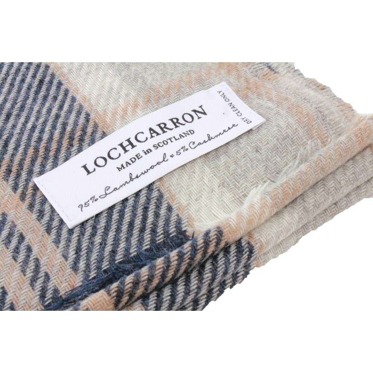 Locharron of Scotland Brock Bannockbane Luxury Fine Wool Stole - Marine / Crème / Beige