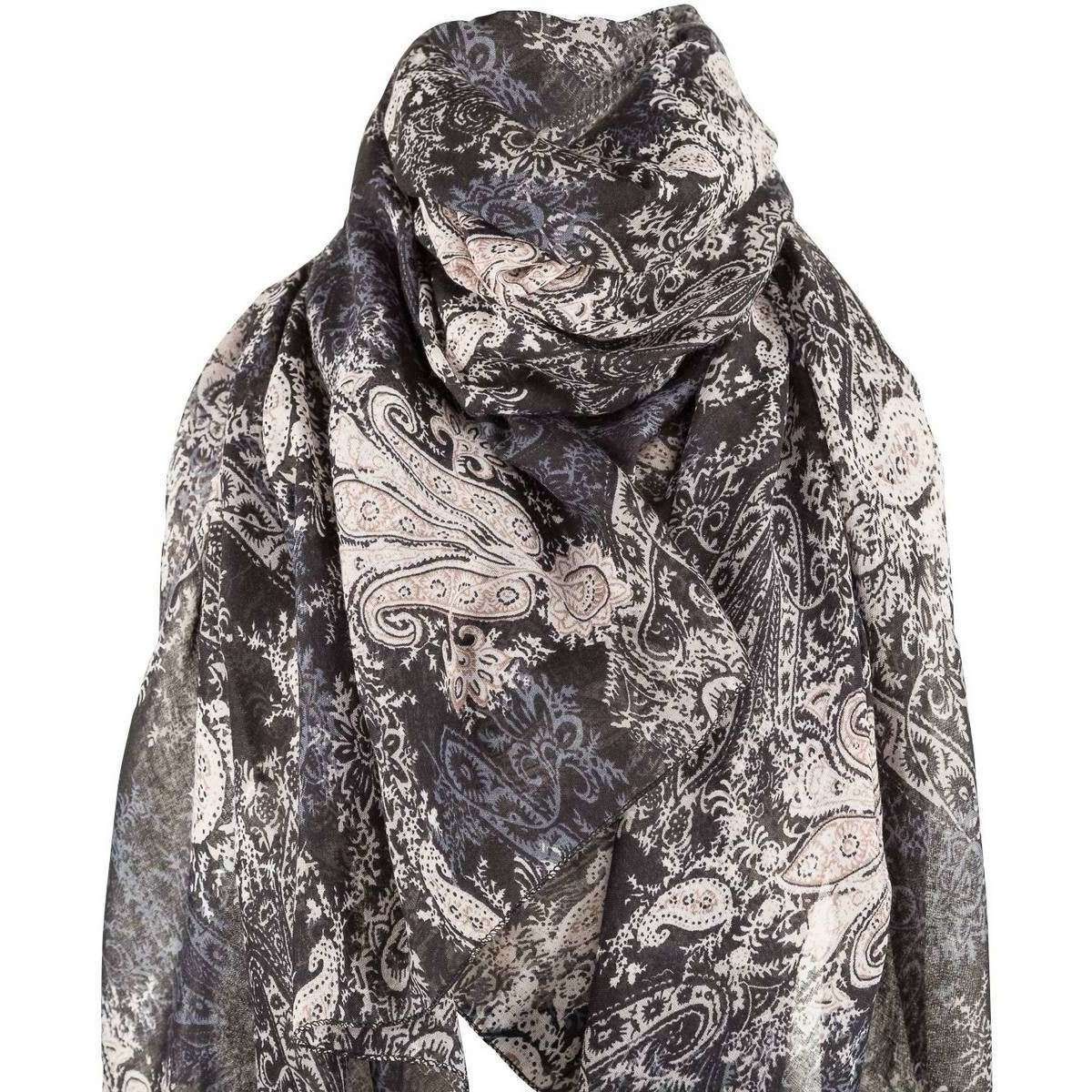 Michelsons of London Abstract Floral Paisley Scarf - Black/Beige