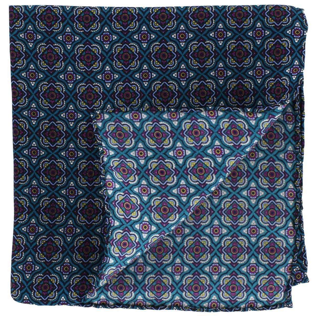 Michelsons of London Bold Medallion Silk Pocket Square - Teal