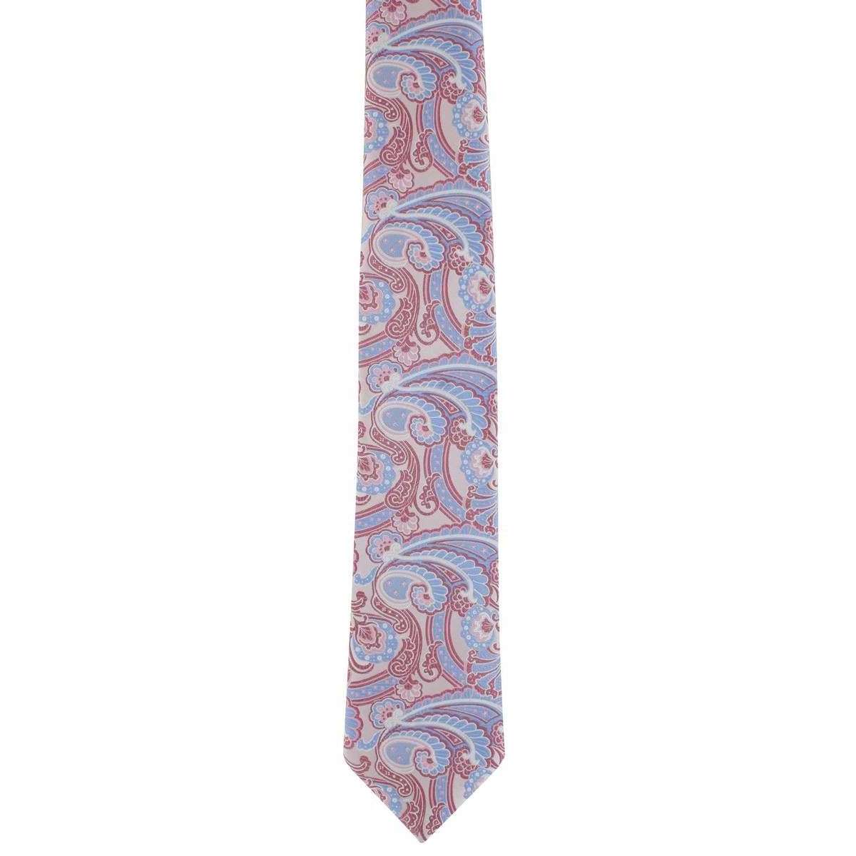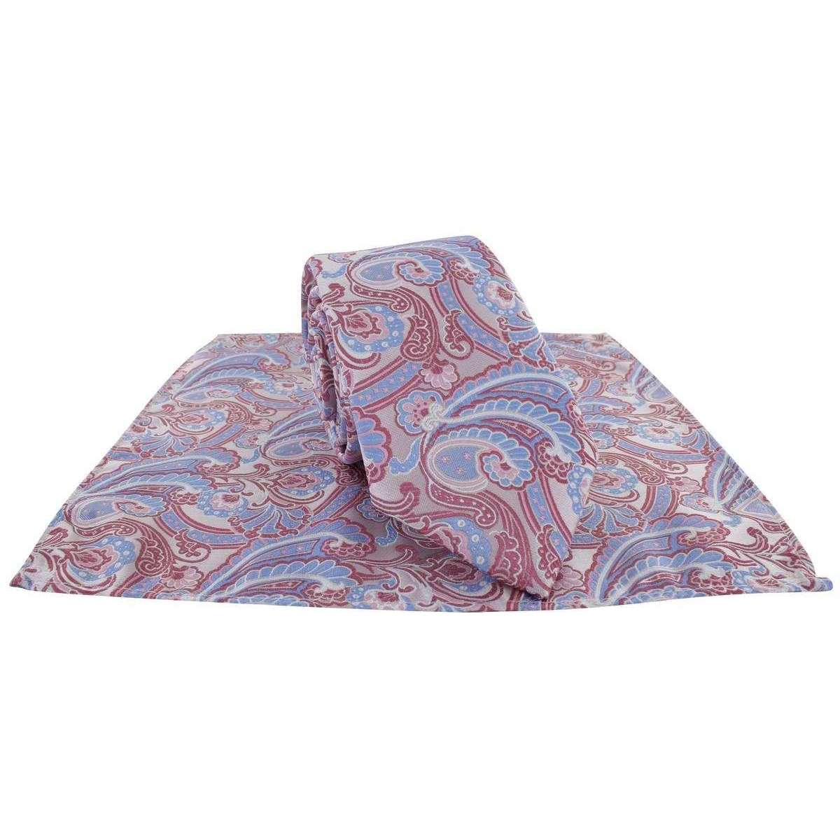 MICHELSONS OF LONDON ORNALENTAL PAISLEY POLYESTER TIE ET ​​POCKET SLACE SET - Pink / Blue