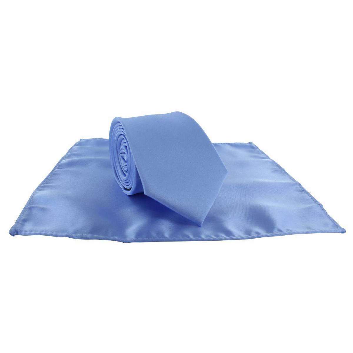 Michelsons of London Slin Satin Polyester Pocket Square and Tie - Ice Bleu