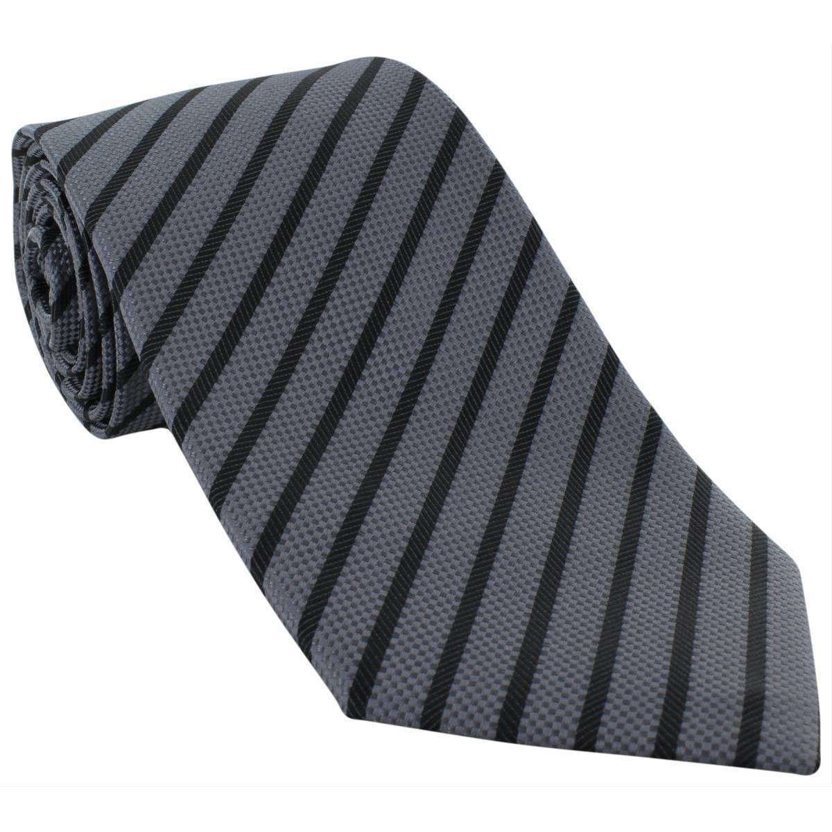 MICHELSONS OF LONDON STRIANT Long Polyester Tie - Gray / Black