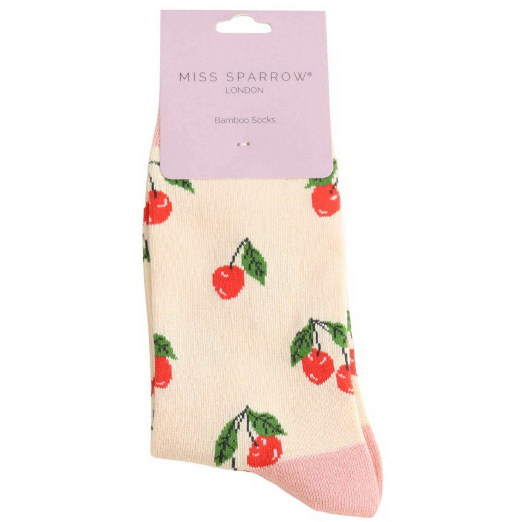 Chaussettes Miss Sparrow London Cerises en Bambou - Crème