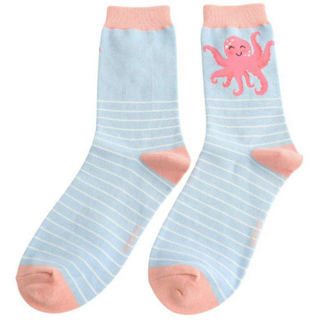Miss Sparrow London Chaussettes en Bambou Rose Octopus - Bleu Poudre