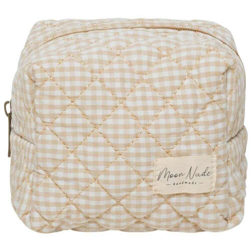 Cette mini trousse de maquillage Moon Nude crème/beige est parfaite pour les femmes, elle est également composée à 100 % de coton. Il mesure 13 cm (hauteur) x 15 cm (largeur) x 11 cm (profondeur). Il est recommandé de laver à la main à l'eau froide avec un détergent doux, ou de laver à l'envers sur un cycle délicat. pour conserver ce sac en bon état. Tous les sacs sont livrés avec un emballage Moon Nude. La mini trousse de maquillage Moon Nude - Crème/Beige est une nécessité absolue pour votre chambre ou votre sac de tous les jours. Cette trousse de maquillage est garantie de garder tous vos produits les plus utilisés ensemble et en sécurité, tout en étant élégante et chic avec son design matelassé fait à la main.