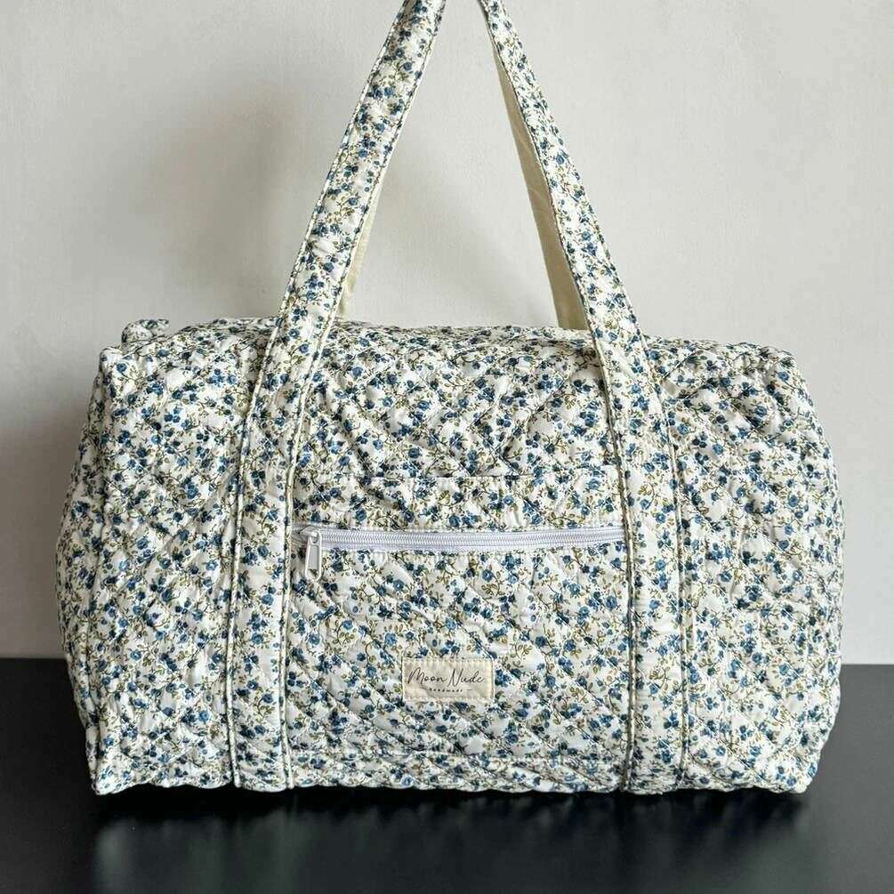 Ce grand sac polochon printanier pour femme est fabriqué à 100 % en coton, de couleur bleue et provient de la marque Moon Nude. Il mesure 30 cm (hauteur) x 50 cm (largeur) x 28 cm (profondeur). Il est recommandé de laver à la main à l'eau froide avec un détergent doux, ou de laver à l'envers sur un cycle délicat. pour conserver ce sac en bon état. Tous les sacs sont livrés avec un emballage Moon Nude. Le grand sac polochon Moon Nude Spring - Bleu/Vert présente un magnifique design matelassé fait à la main. Ce sac comporte une poche extérieure zippée, un intérieur spacieux et deux grandes poignées, parfait pour les escapades du week-end ou pour transporter de nombreuses affaires.