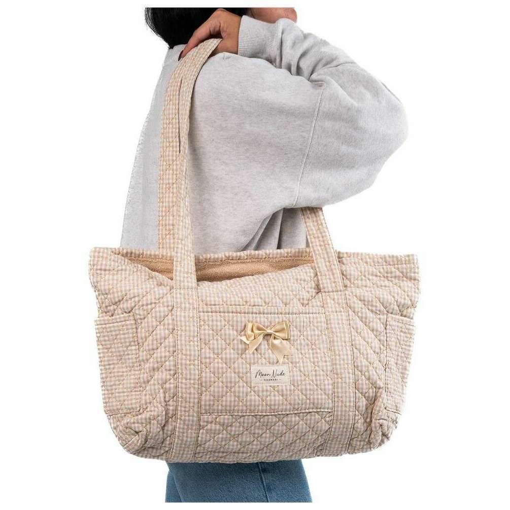Ce sac fourre-tout pour femme bien fait de Moon Nude est de couleur crème/beige et est fabriqué à 100 % en coton. Il mesure 30 cm (hauteur) x 42 cm (largeur) x 12 cm (profondeur). Il est recommandé de laver à la main à l'eau froide avec un détergent doux, ou de laver à l'envers sur un cycle délicat. pour conserver ce sac en bon état. Tous les sacs sont livrés avec un emballage Moon Nude. Le sac fourre-tout Moon Nude - Crème/Beige présente un magnifique design matelassé fait à la main. Parfait pour les déplacements, que ce soit pour voyager ou pour un usage quotidien. Ce sac fourre-tout est doté d'une fermeture zippée pour plus de sécurité, de longues bretelles pour plus de confort et d'un intérieur spacieux pour toutes vos affaires.