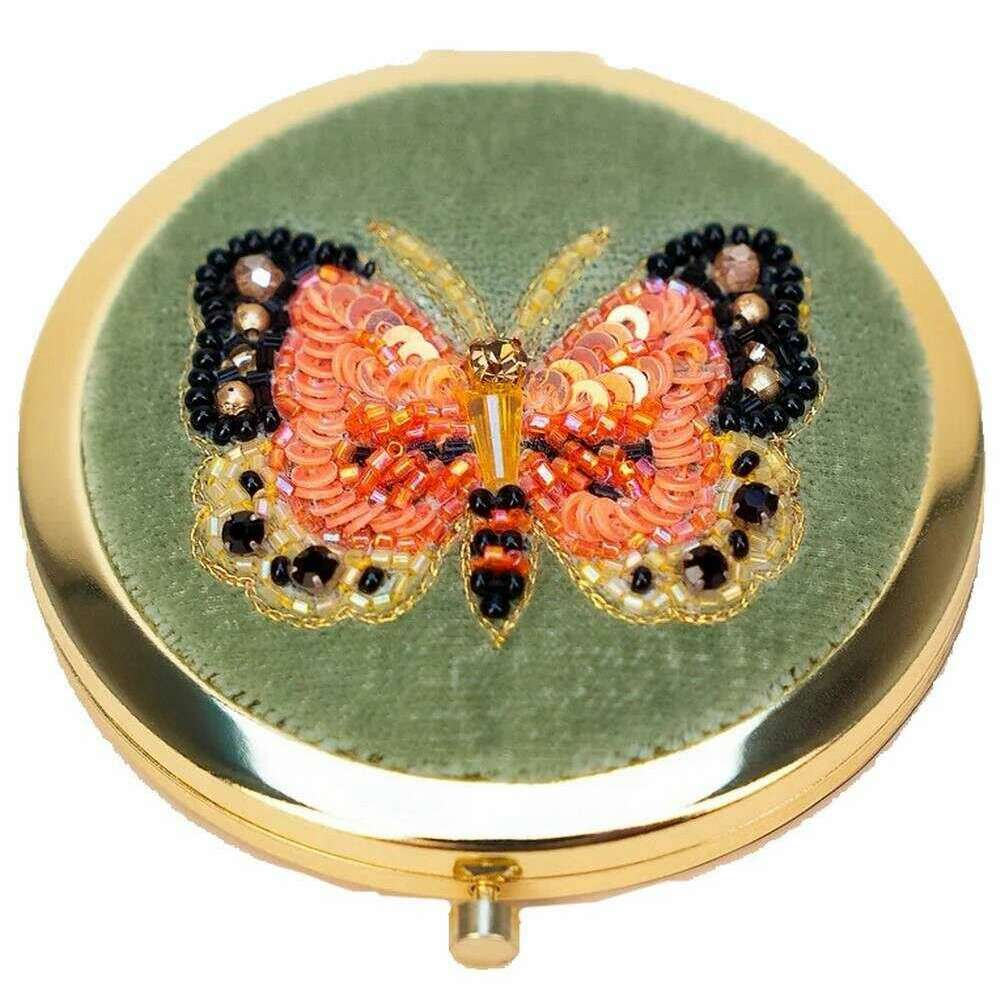 Miroir brodé papillon Powder Bonny - Vert/Rose/Noir
