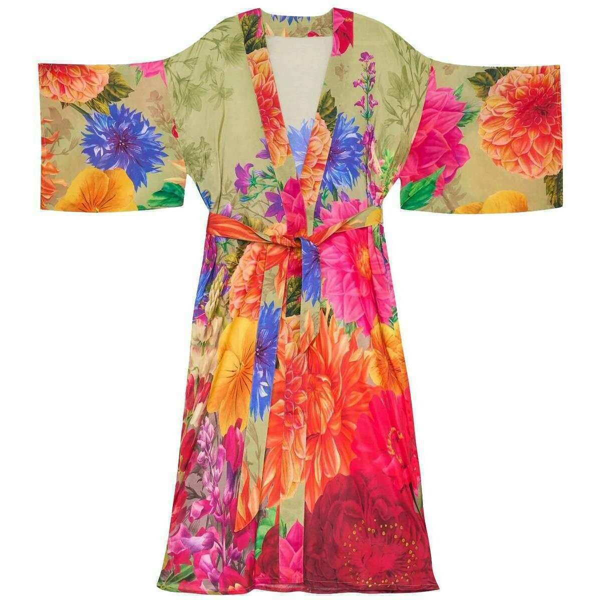 Powder Bountiful Blows Kimono Robe - vert / rose / orange