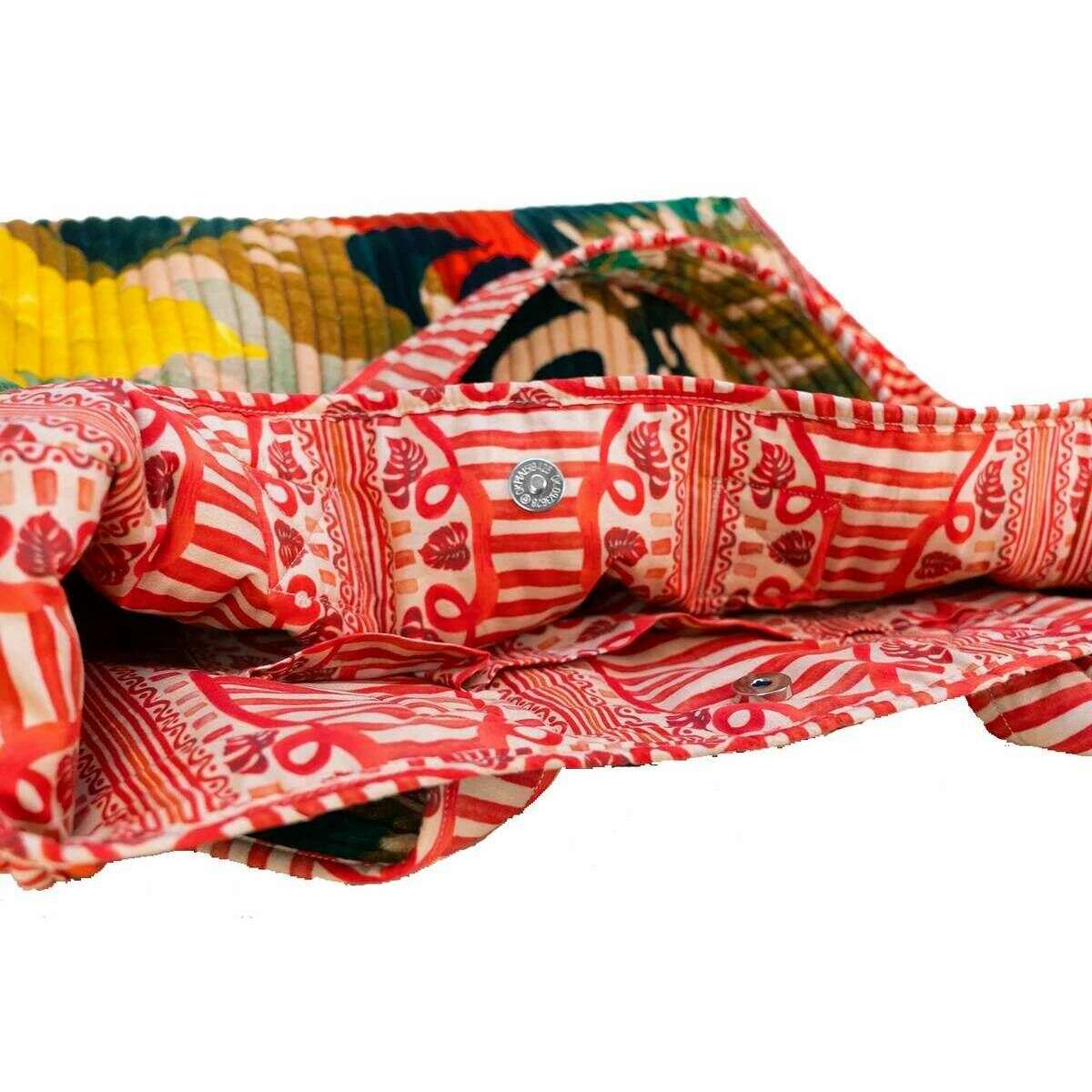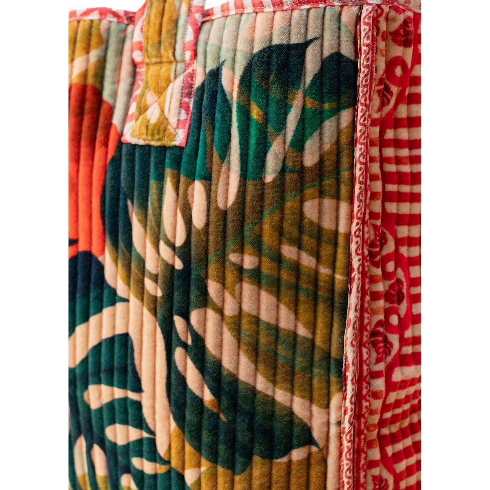 Cabas matelassé en velours de luxe Powder Exotic Leaves - Beige/Rouge/Vert