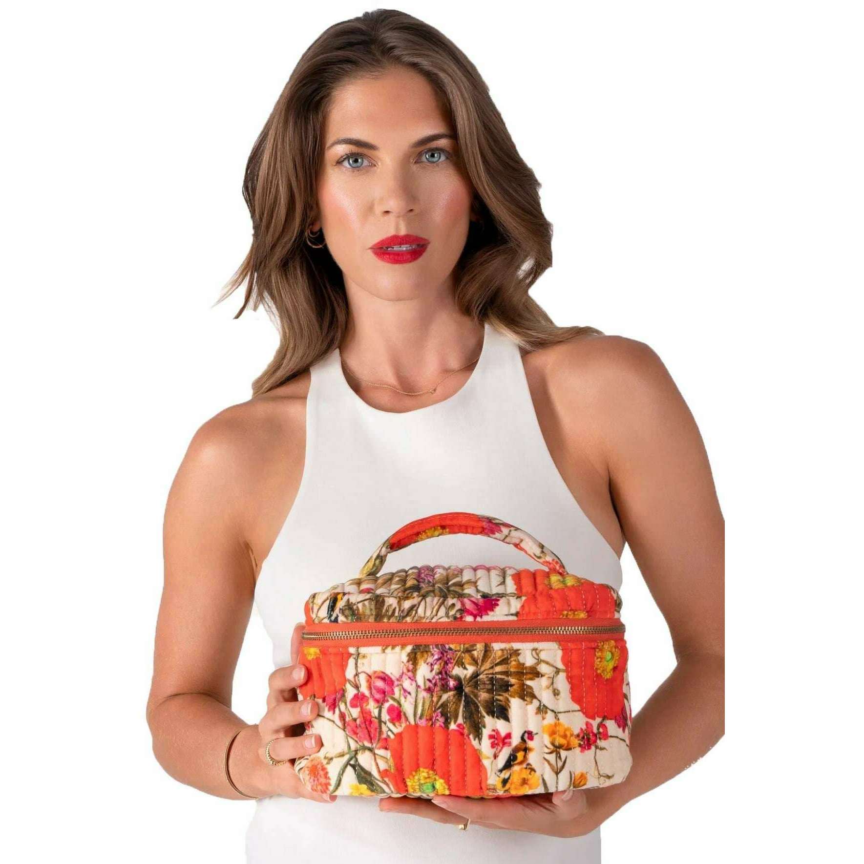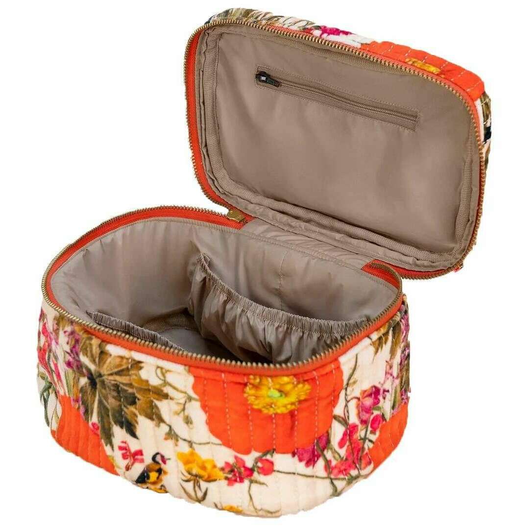 Trousse de toilette matelassée Powder Fine Flowers - Blanc/Rouge/Marron