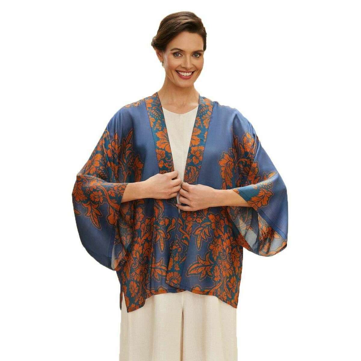 Veste de kimono à tapisserie en poudre - bleu en jean