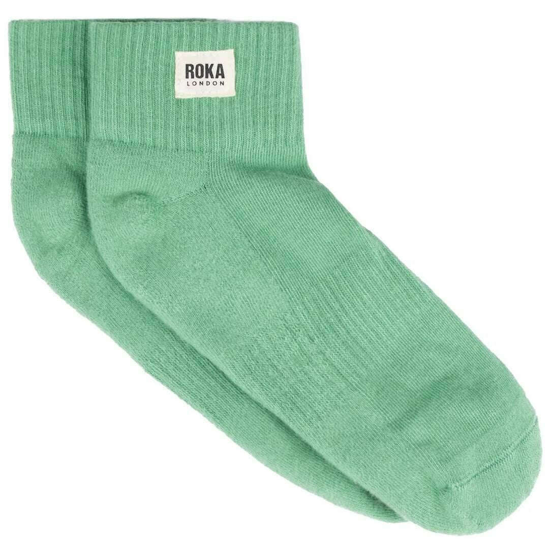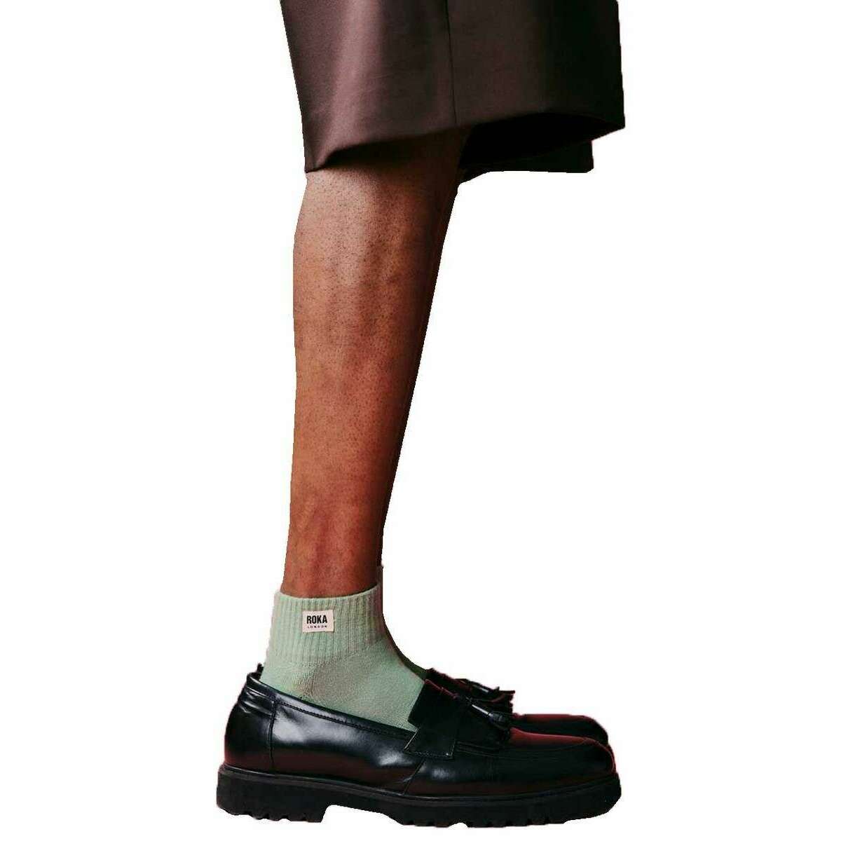 Ces chaussettes Wembley pour hommes ou femmes sont façonnées par la marque Roka de couleur verte et sont fabriquées à 82% de coton biologique, à 16% de nylon recyclé et à 2% d'élastane. De plus, les chaussettes vertes Matcha sont conçues dans un motif simple, toutes les chaussettes sont complètes avec des étiquettes de chaussettes Roka. Les chaussettes Roka Wembley - Matcha Green sont un incontournable à ajouter à votre collection. Le mélange de coton biologique garantit que vos pieds sont restés bien ajustés et confortables toute la journée, tandis que la belle couleur vive vous permet de vous être élégant et à la mode. Le logo Roka London est complété sur le côté supérieur de chaque chaussette pour donner ce look de base.