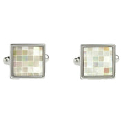 Simon Carter Small Square Checker Cuffleks - Blanc / Silver