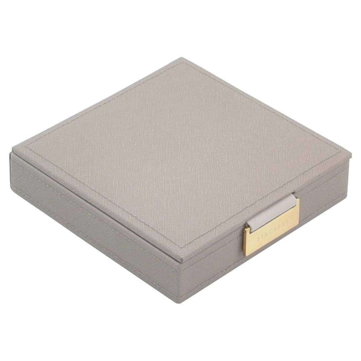 Designer Stackers vous a apporté ce PU pour femmes avec une boîte à bijoux en velours à l'aide de tons taupe / gris. Il mesure 3,5 cm (hauteur) x 15 cm (largeur) x 15 cm (profondeur). Toutes les boîtes à bijoux sont complètes dans l'emballage des empiles. La boîte à charme des empilers - Taupe / Gray ferait le cadeau parfait à toute femme avec un bracelet à charme. Cette boîte peut contenir jusqu'à 18 charmes et votre bracelet dans une conception organisée sans faille. Avec une fermeture de popper en métal, c'est facile à voyager, en gardant tout en sécurité au même endroit.