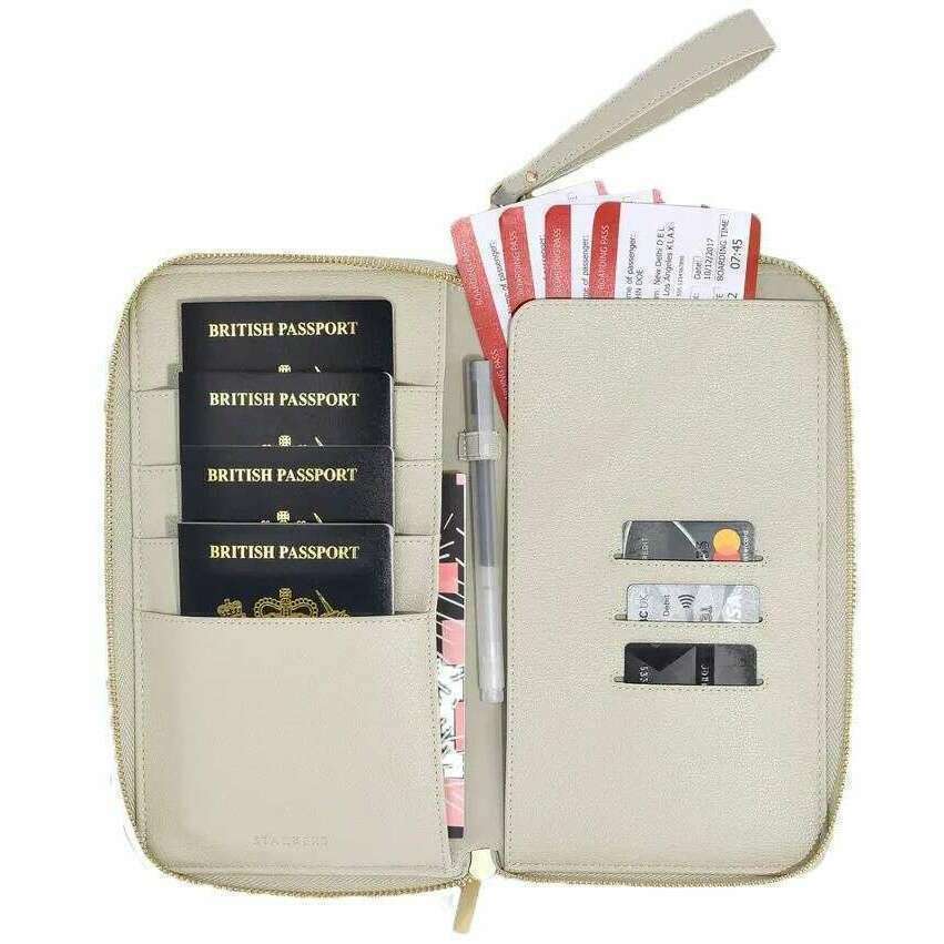 • Magasins jusqu'à 4 passeports, fermeture à glissière, poche à glissière arrière, poignée, maintient jusqu'à 3 cartes, porte-stylo, manche de document