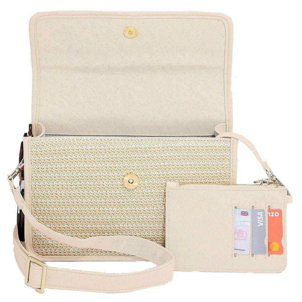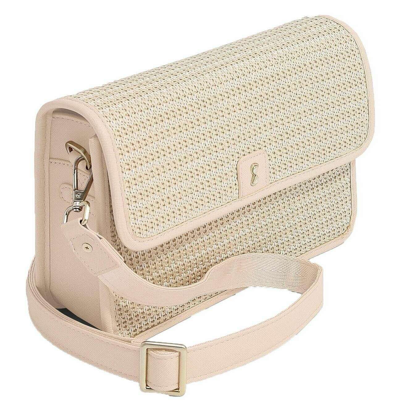• Grand intérieur , Compartiment zippé séparé , Passants élastiqués , Sac à main zippé amovible , Mini miroir , Boucle latérale , Bandoulière réglable