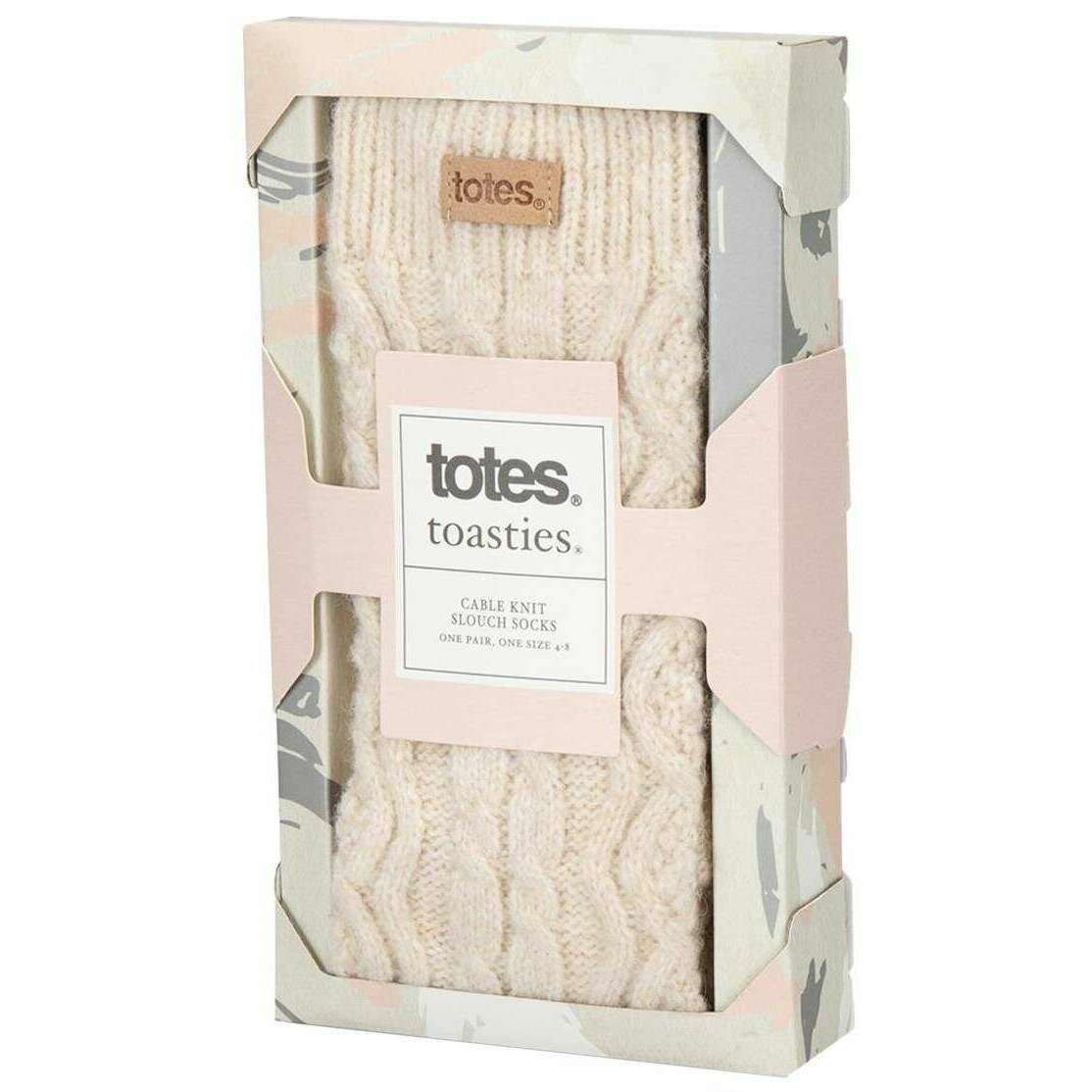 Chaussettes pantoufles souples en tricot torsadé Toasties de Totes - Crème d'avoine
