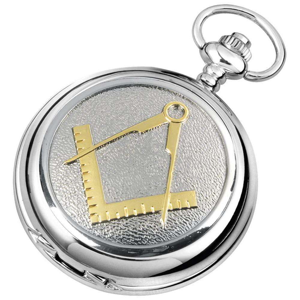 Woodford Masonic Chrome plaqué Double Hunter Hunter Skeleton Pocket Watch - Silver / Gold