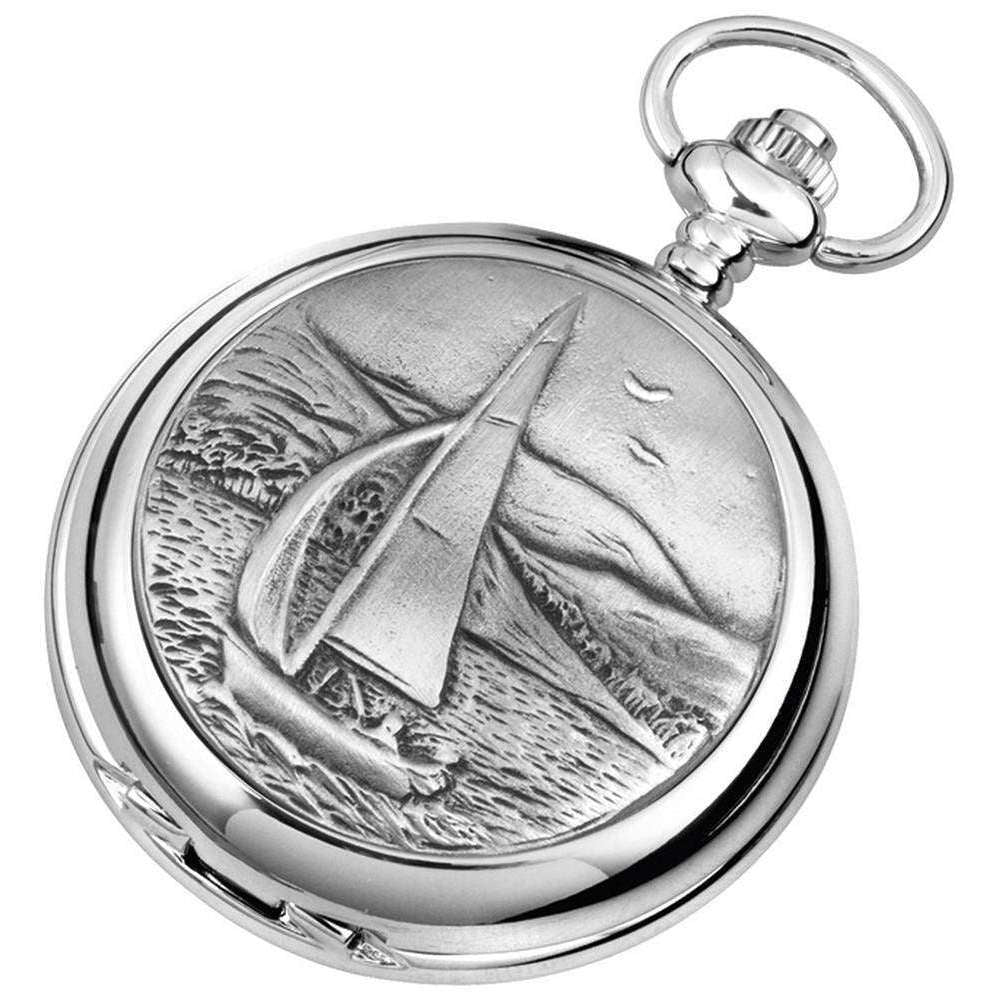 Woodford Sailing Chrome plaqué Full Hunter Quartz Pocket Watch - Silver