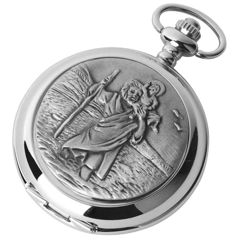 Woodford St Christopher Chrome plaqué Full Hunter Quartz Pocket Watch - Silver