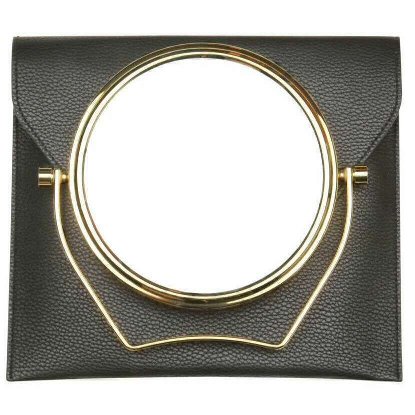 Vervaardigd uit 100% veganistisch faux lederen zakje is deze zwarte damesreisspiegel en kast door de ontwerper Alice Wheeler London. Het meet 18,5 cm (hoogte) x 20,5 cm (breedte). Alle spiegels worden compleet geleverd met Alice Wheeler -verpakkingen. De Alice Wheeler London Travel Mirror and Case - Black is een stijlvol accessoire en extreem handig om mee te nemen wanneer je onderweg bent. Het prachtig verfraaide bijenlogo bevindt zich aan de voorkant van de behuizing en de sluiting van de persstud beveiligt de spiegel erin. Binnenin vindt u een 7x vergrotspiegel met een standaard zodat u uzelf gemakkelijk kunt controleren.