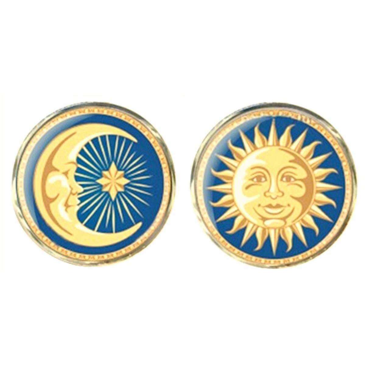 Bassin en bruine zon en halve maan manchetknopen - blauw/geel