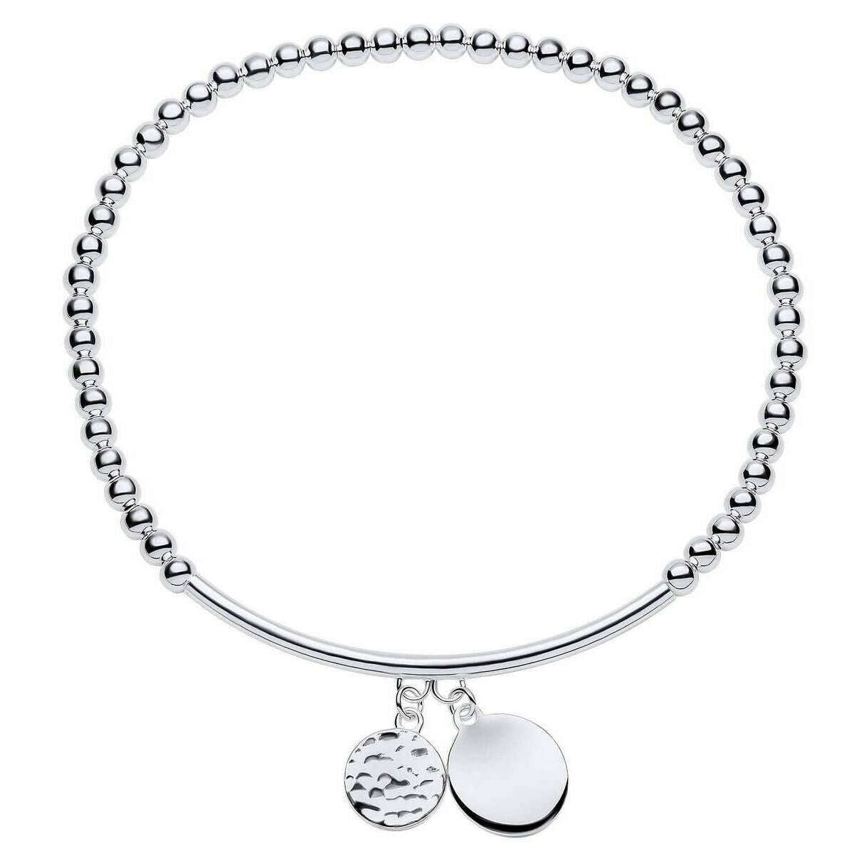 Met behulp van zilver 100% gerecycled sterling zilver, is deze kralen stretchschijf bedelarmband aan het begin perfect voor vrouwen en een must. Het meet 6 cm (diameter). Alle armbanden worden compleet geleverd met het begin van het begin. Het begin kralen rekschijf bedelarmband - zilver combineert eenvoud met elegantie. Deze rekbare armband zorgt voor de perfecte pasvorm voor iedereen. Met twee charmes, kralen en een bar gemaakt van gerecycled sterling zilver geeft dit stuk zijn prachtige glans en hoogwaardig gevoel. Geweldig voor de dag om te dragen met andere stukken of om een ​​mooie touch toe te voegen aan je avondoutfits.