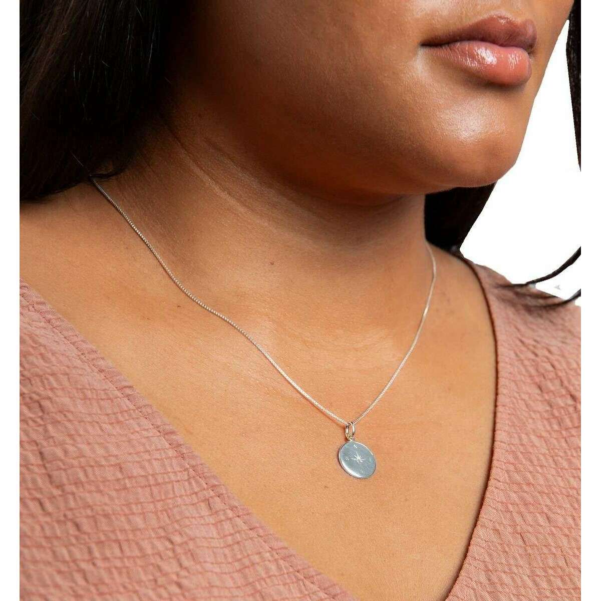 Beginnings kompasontwerp Disc Pendant - Silver