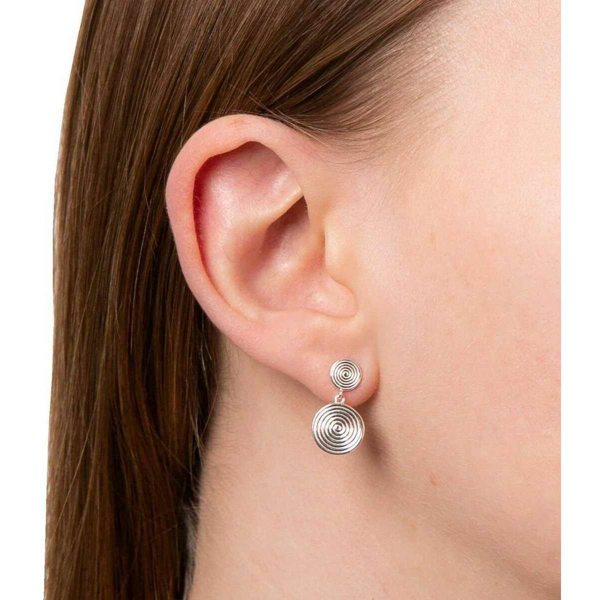 Beginnings dubbele spiraalvormige schijf druppel oorbellen - zilver
