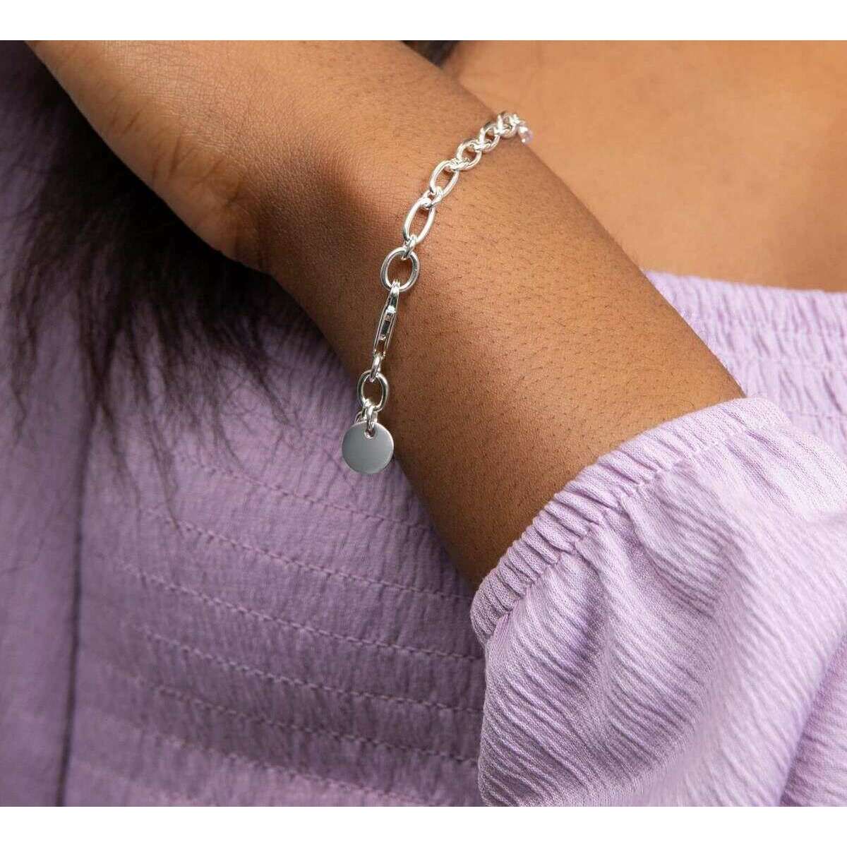 Beginnings lange link ketting tag armband - zilver