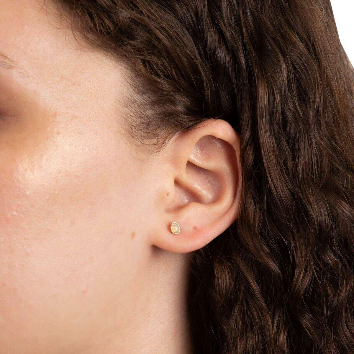 Begin oktober halfedel geboortesteen oorbellen - goud/wit