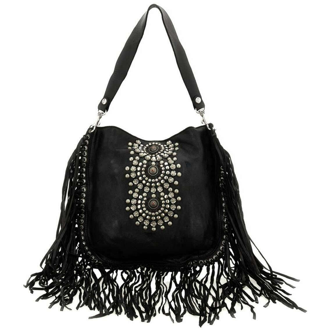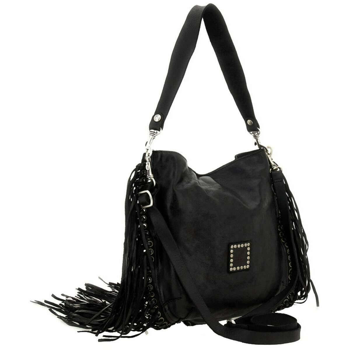 Deze zwarte camelia schoudertas voor dames van ontwerper Campomaggi is vervaardigd uit 100% rundleer. De afmetingen zijn 30 cm (hoogte) x 30 cm (breedte) x 0,5 cm (diepte). Campomaggi heeft deze camelia schoudertas gemaakt in Italië. Het wordt aanbevolen om met een vochtige doek te borstelen en het gebruik van schoonmaakmiddelen te vermijden om deze tas in goede staat te houden. Alle tassen worden compleet geleverd met campomaggi-verpakking. De Campomaggi Camelia Schoudertas - Zwart is een must-have tas voor dagelijks gebruik die luxe en een leuke uitstraling aan je kleding toevoegt. De kwastjes en strass-steentjes zorgen voor een elegante en meisjesachtige touch, terwijl de afneembare schouderband en de afneembare verstelbare crossbodyband voor veelzijdigheid zorgen, afhankelijk van de gelegenheid. Het hoofdvak biedt voldoende opbergruimte, zodat je al je benodigdheden bij je hebt. Het is gemaakt van premium leer en heeft een prachtige vintage-geïnspireerde kleur die wordt bereikt door plantaardig looien, een traditioneel proces waarbij natuurlijke ingrediënten worden gebruikt voor een rijke afwerking.