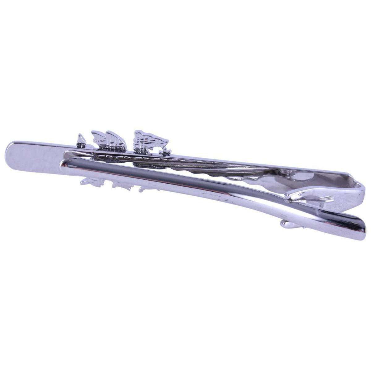 David Van Hagen Dragon Cut Rhodium Tie Slide - Silver