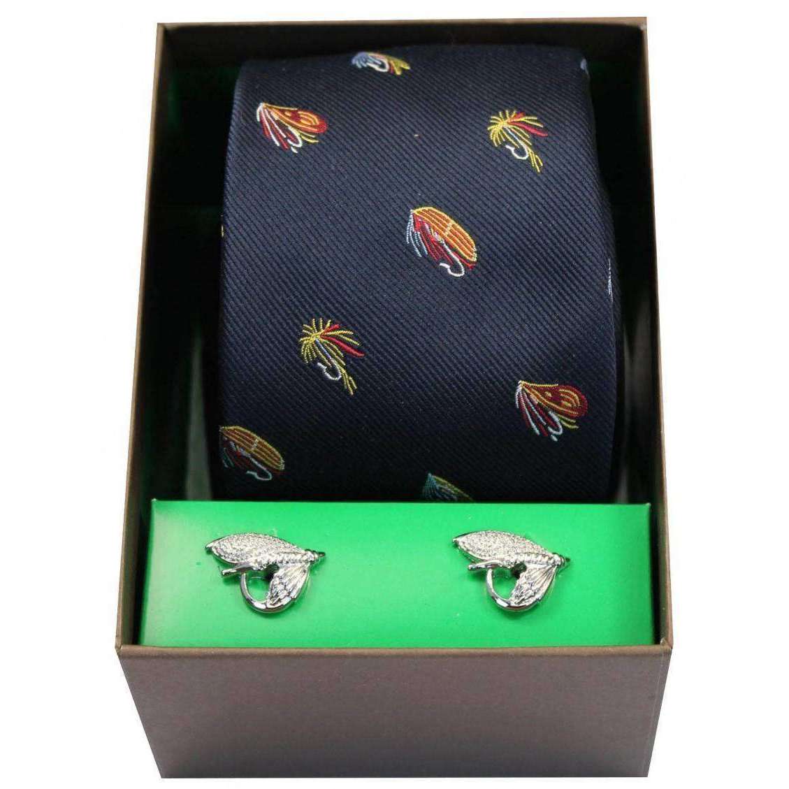 David Van Hagen Fishing Files Tie en CuffLinks Set - Navy
