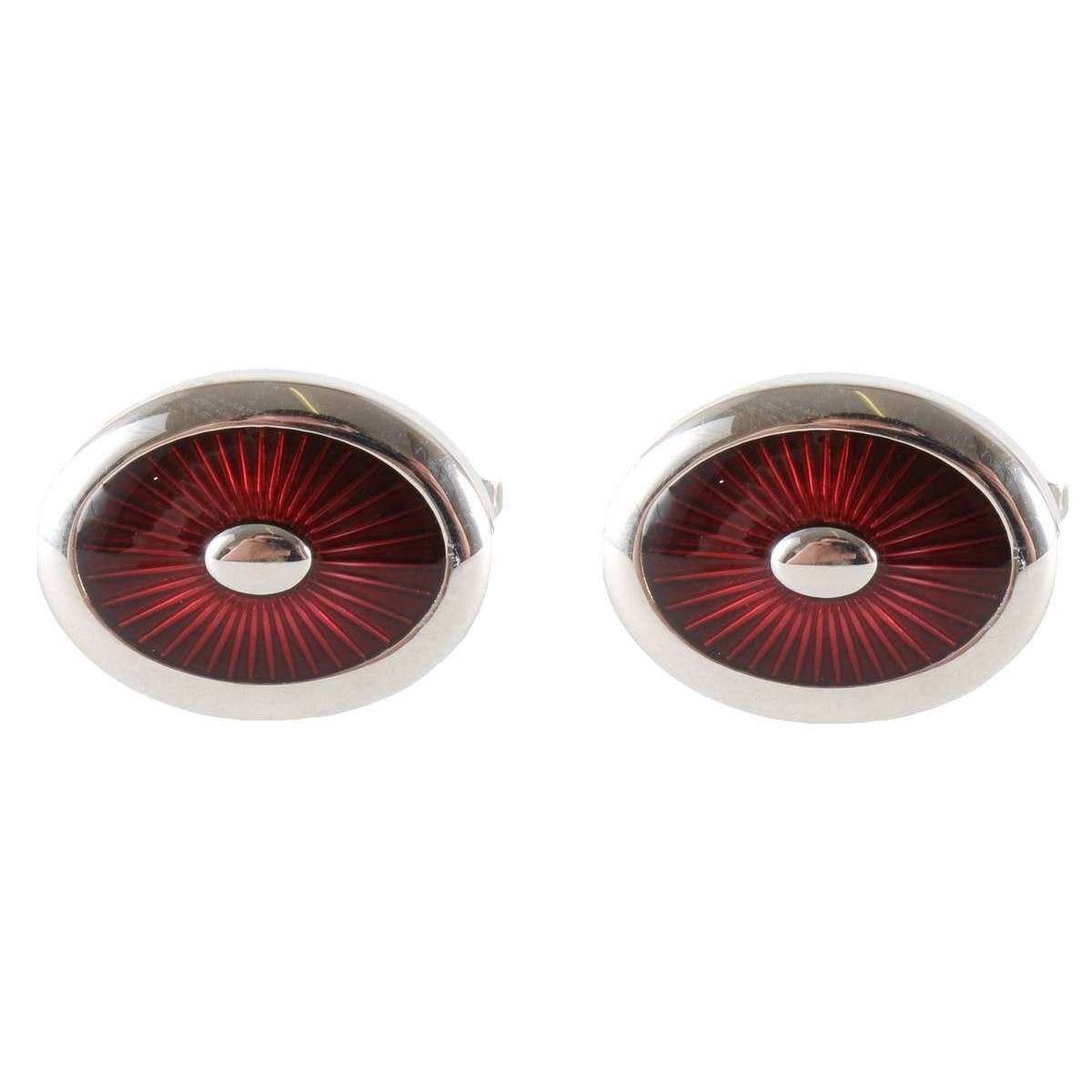 David Van Hagen Oval Email Cufflinks - rood/zilver