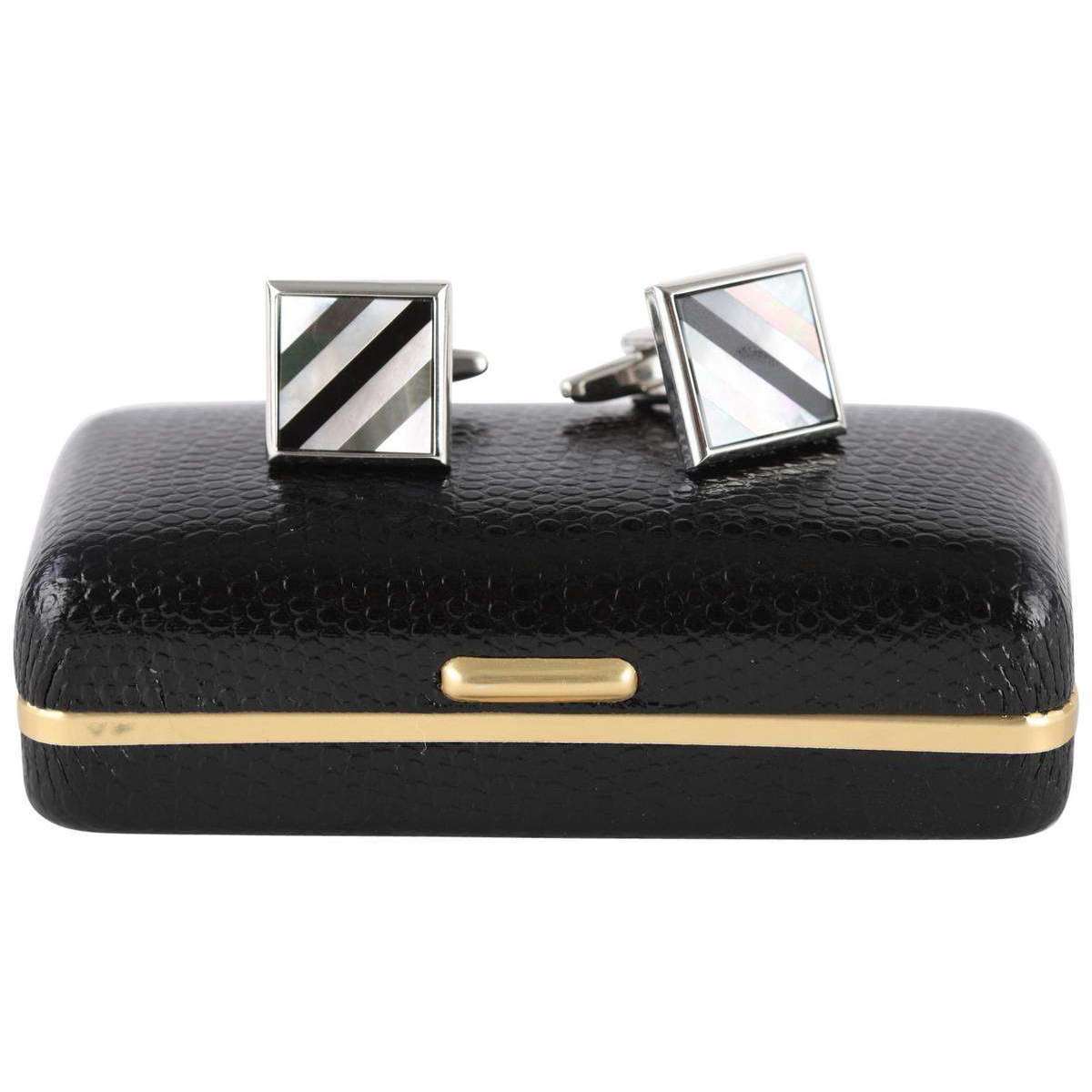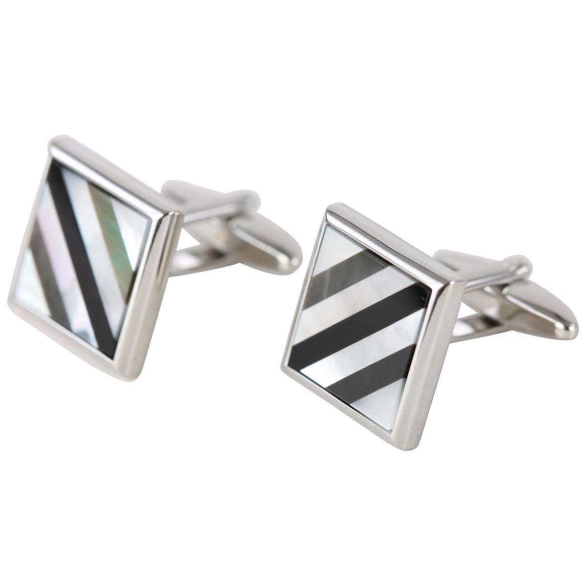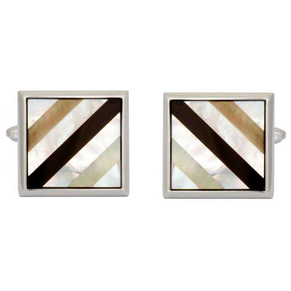 David Van Hagen Rhodium Pearl of Pearl en Onyx gestreepte vierkante manchetknopen - Wit/zwart/zilver