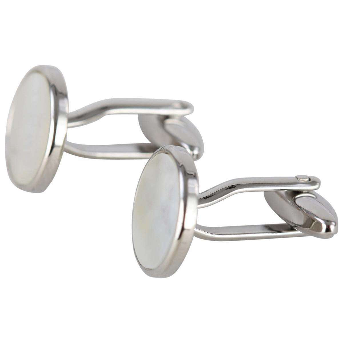 David Van Hagen Rhodium Peled Pearl Round Porthole Cufflinks - White/Silver