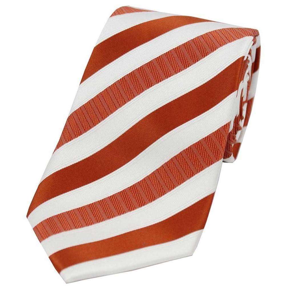 David Van Hagen gestreepte polyester stropdas - oranje/wit
