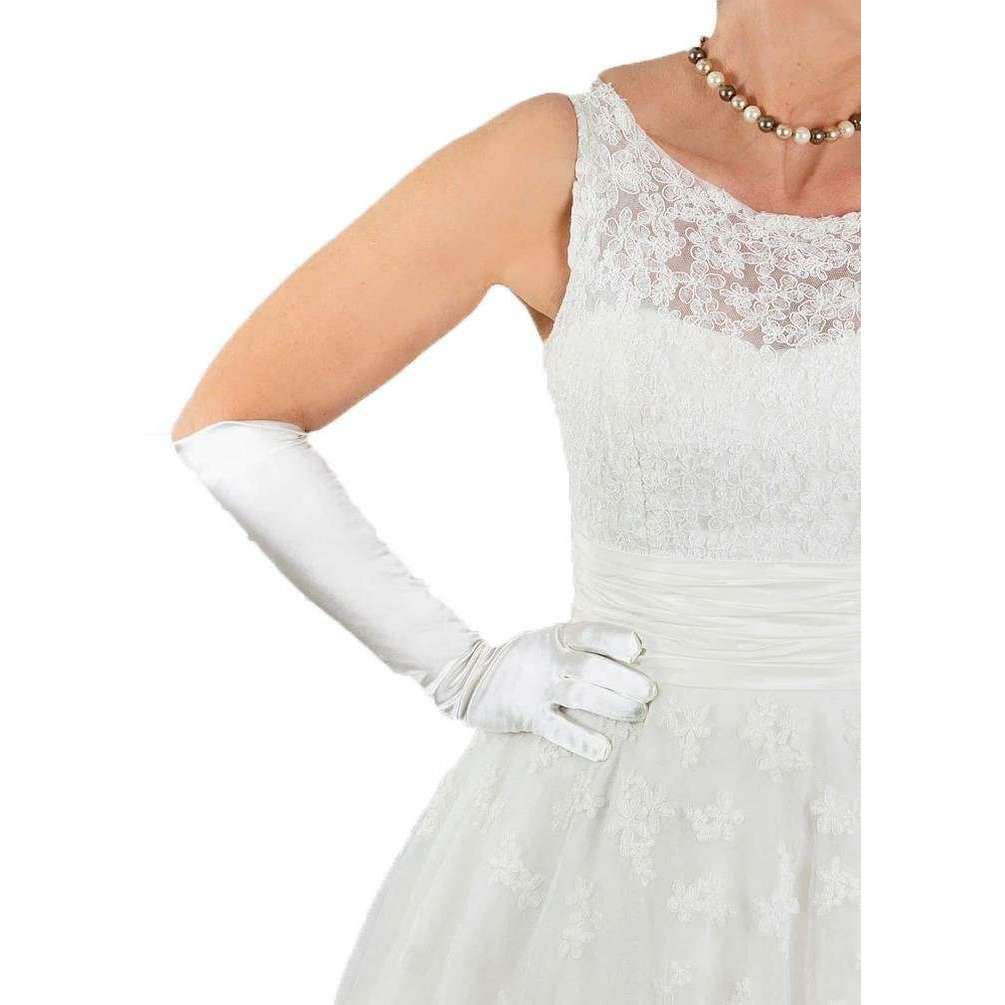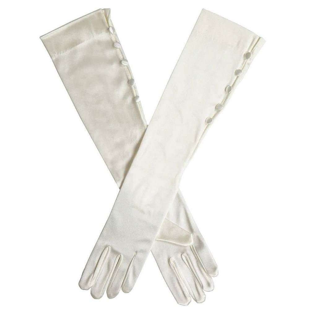 Dents daphne lang onder elleboog satijnen knoppenhandschoenen - ivoor