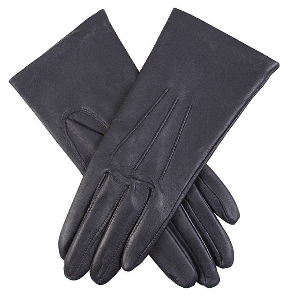 Deuken Elizabeth zijde gevoerde gladde graanleerhandschoenen - marine