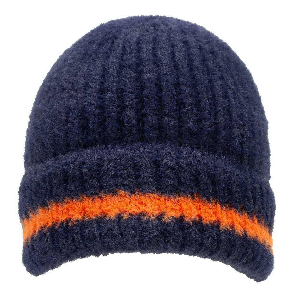 Dents Feather Yarn Beanie Muts - Marine/Pompoen Oranje