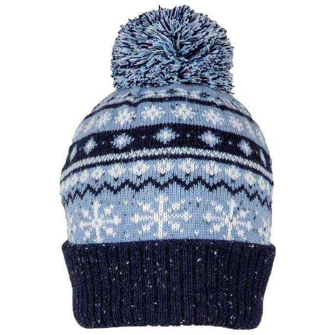 Dents Jacquard Fair Isle Knitted Bobble Hat - Cornflower Blue