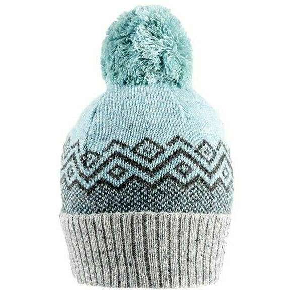 Deuken jacquard geometrisch patroon gebreide bobble hoed - eend ei blauw/duif grijs