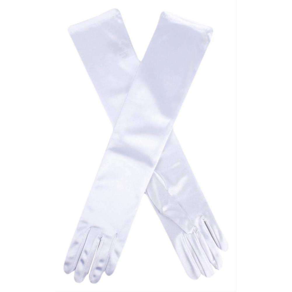 Deuken lange satijnen ellebooglengte avondhandschoenen - wit