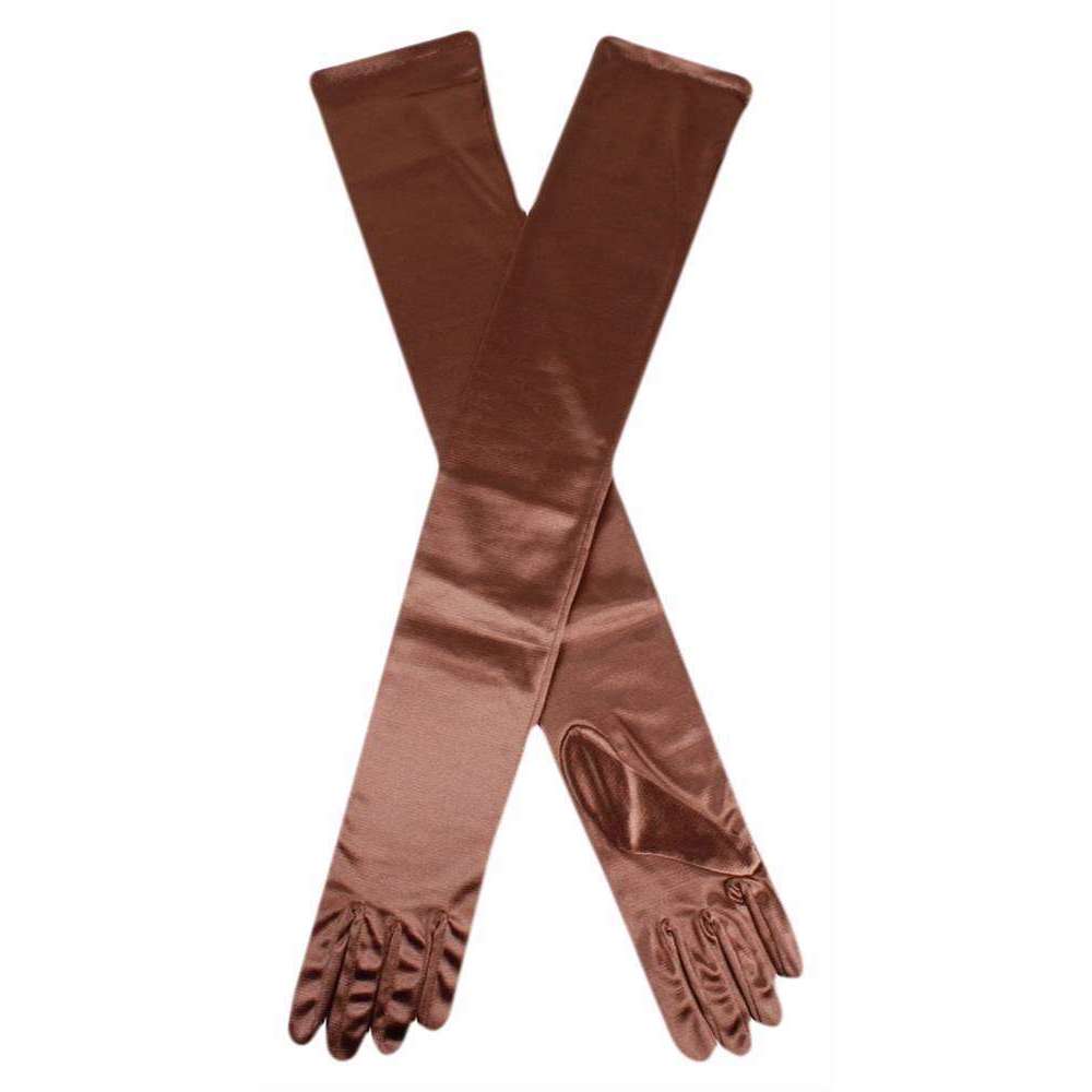 Deuken lange satijnen schouderlengte avondhandschoenen - brons