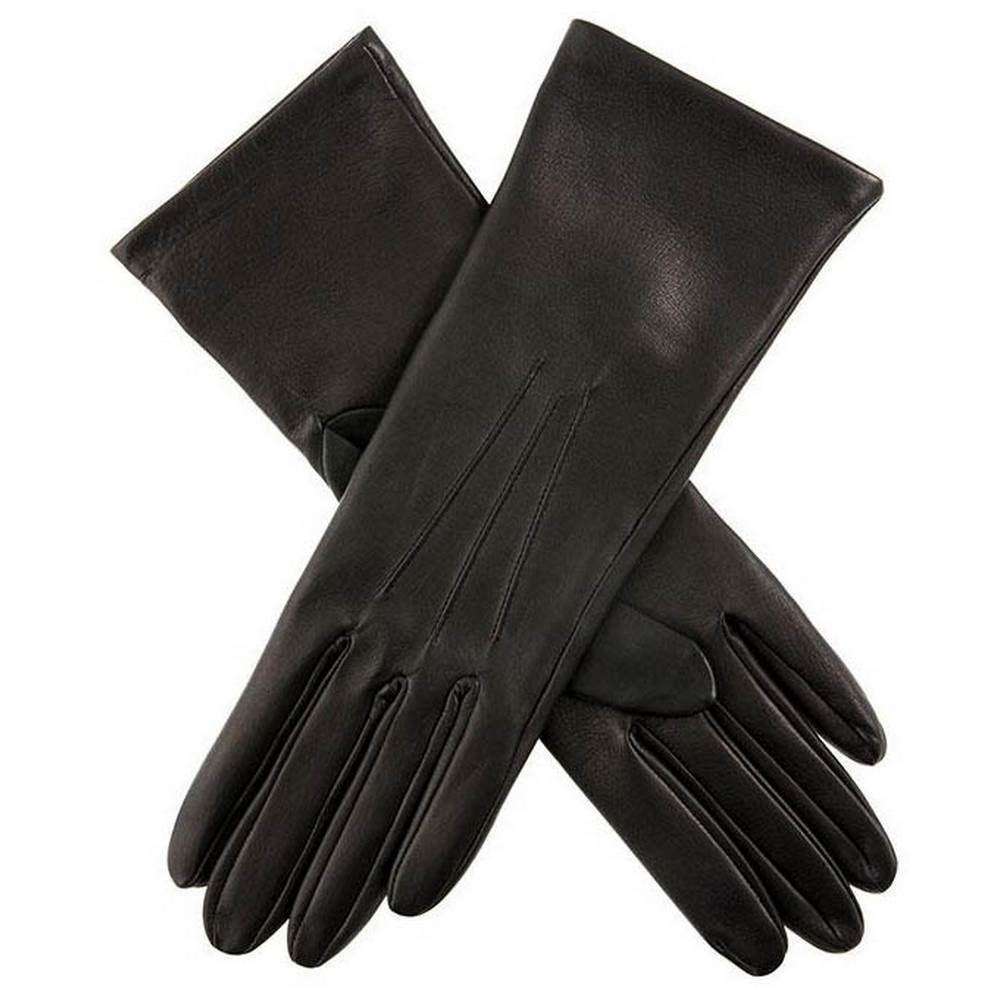 Deuken longleat zijden gevoerde handschoenen - zwart/roos rood