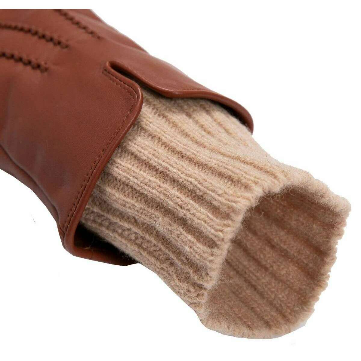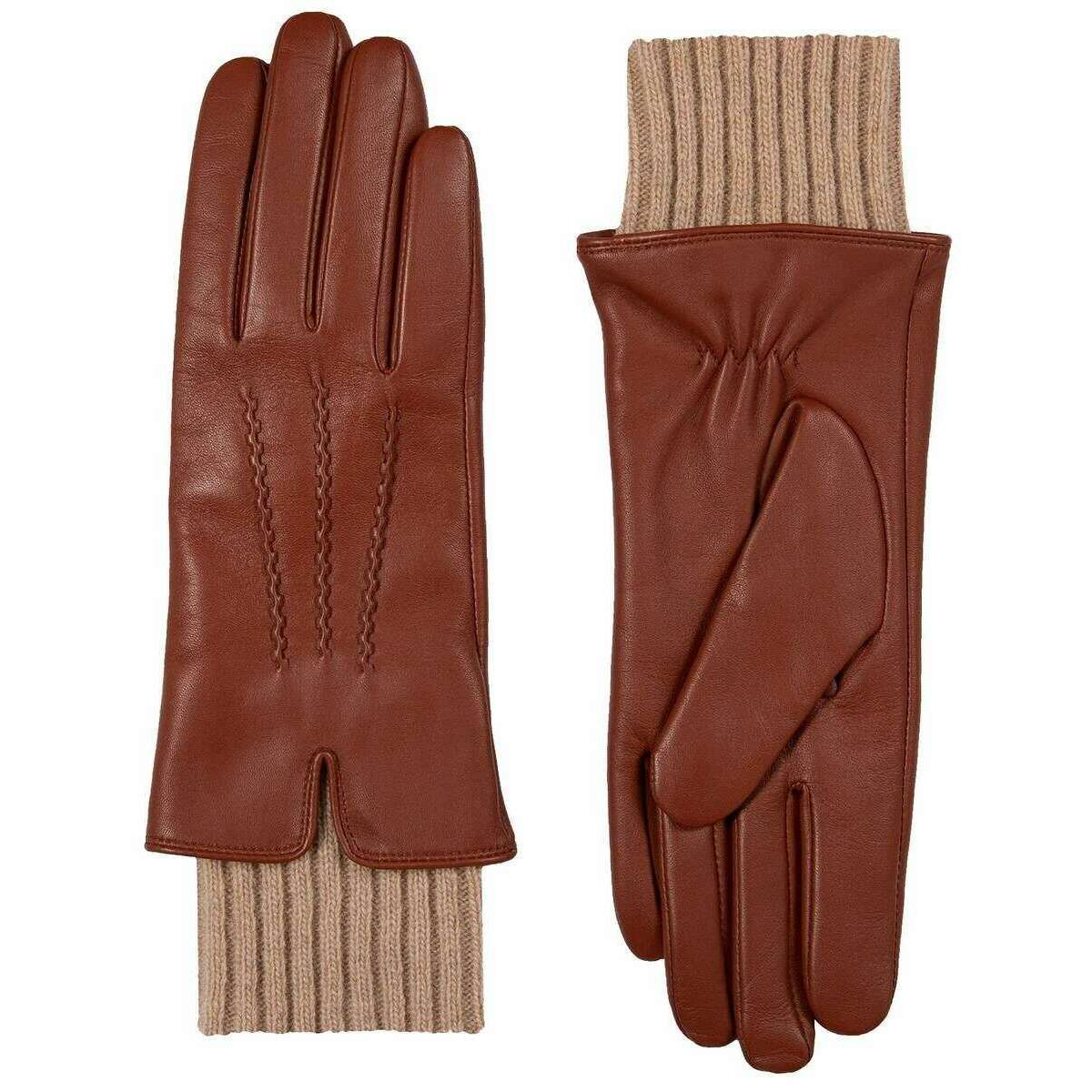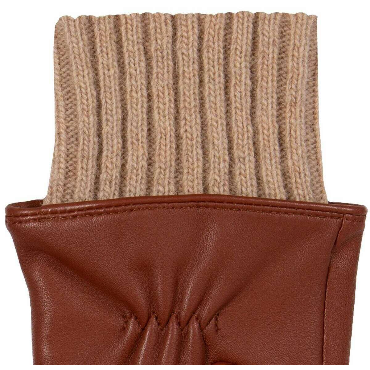 Deuken tamara gebreide manchet lederen handschoenen - cognac tan/kameel tan